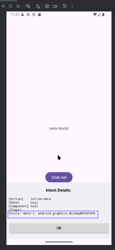 Pour illustrer comment une application utilise l’activité exposée par Camera, créons une application qui a besoin de récupérer une photo prise en direct.
