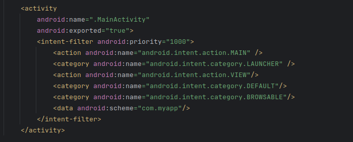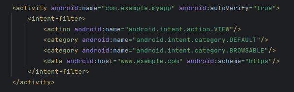 myapp://produit/123peut ouvrir directement l’activité “produit 123” dans l’application myapp.myapp://auth?code=xyzpeut servir à gérer une redirection OAuth après connexion.