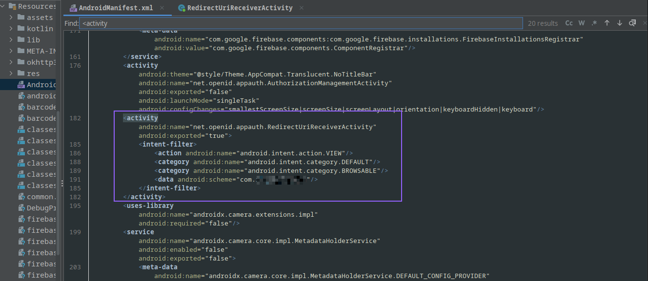 Tout d’abord, analysons le AndroidManifest.xml pour découvrir l’intent permettant cette fonctionnalité :